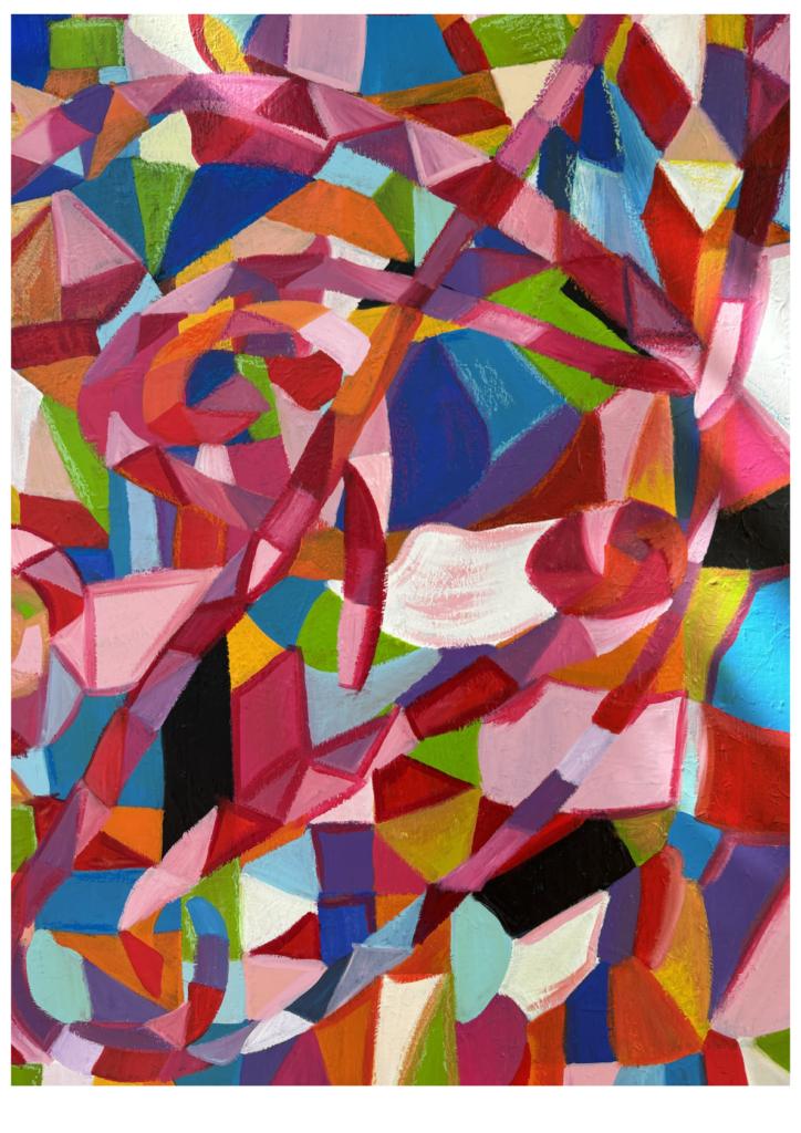 « Le cerveau et le coeur s’intimident » – acrylique et pastels gras sur toile 116x89cm (2025)