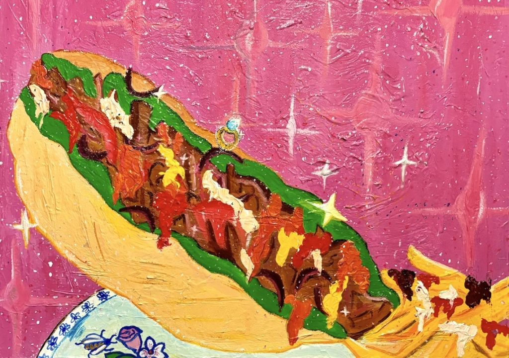 “Demande en kebab” – peinture acrylique sur toile 40x50cm (2024)