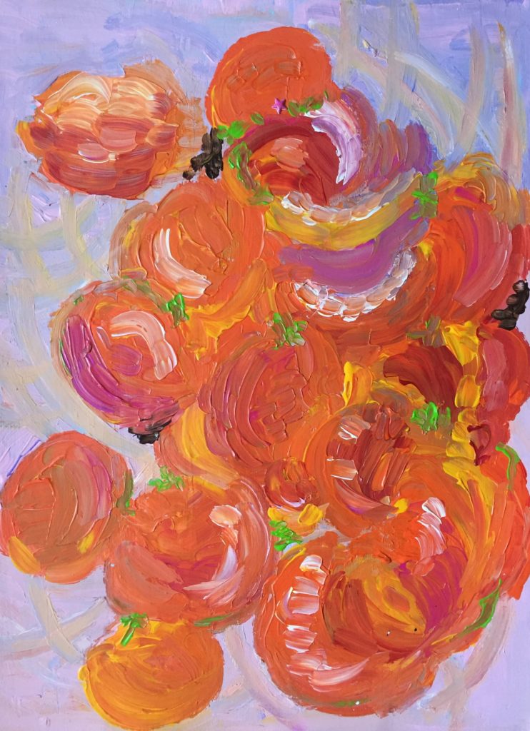 Les oranges de Naba (d’après Segou par Maryse Condé) – peinture acrylique sur papier A3 (2022)
