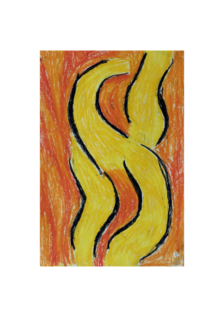 ”Recherche de mouvement” – étude : pastels gras sur papier A4 (2024)